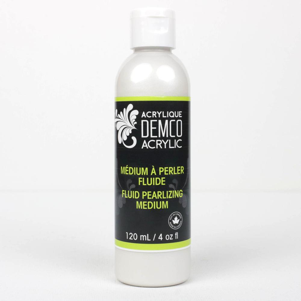 The fluid pearlizing medium, when mixed with fluid acrylic paints, gives a pearl look. Mix 1 to 1 depending on desired pearl intensity.