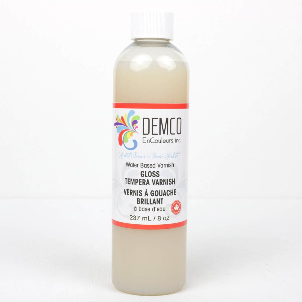 Protect your tempera work while giving it a water resistant, high gloss sheen with this durable water based finish.